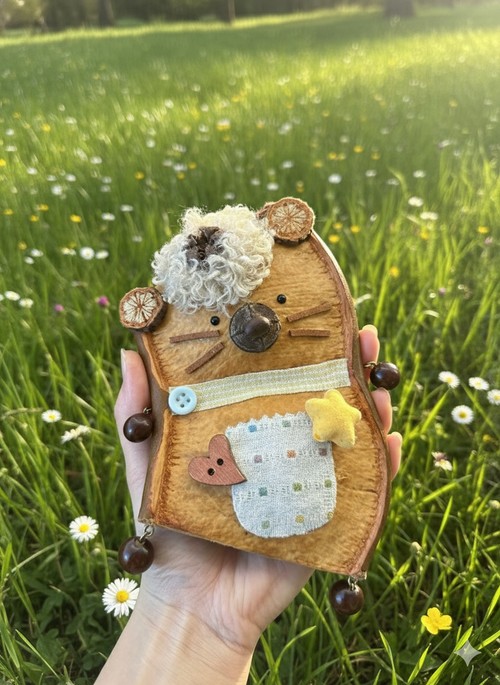 Handmade Entada Bean Pod Cat Ornament